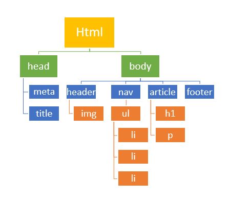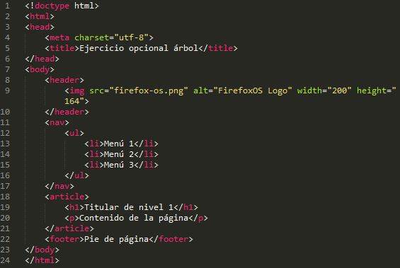Realiza un esquema sencillo de este documento HTML a su estructura tipo árbol, que resuma brevemente las relaciones directas entre elementos de la página, clarificando la jerarquía del árbol.